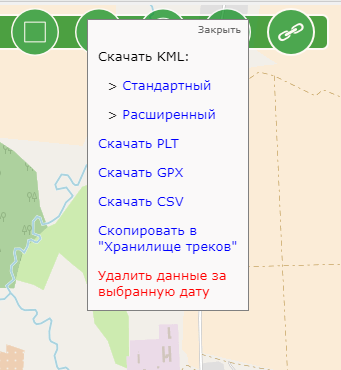В этом случае вы сможете сделать выгрузку данных со скоростью в следующих форматах: KML (расширенный), PLT, GPX и CSV.