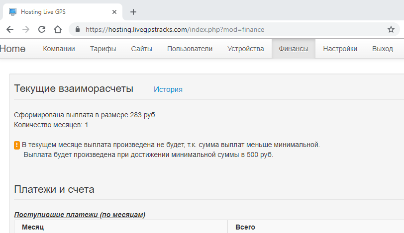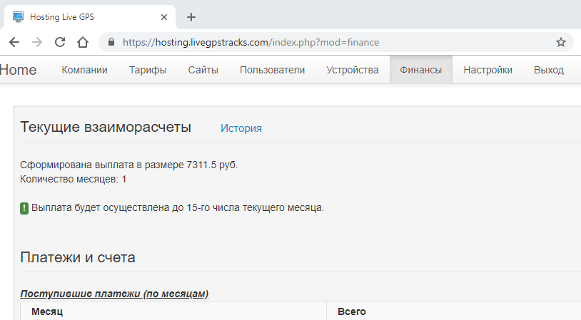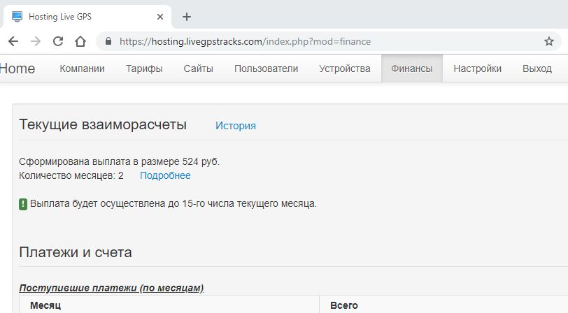 Где найти данную информацию: Панель администратора хостинг-платформы -> меню "Финансы".
